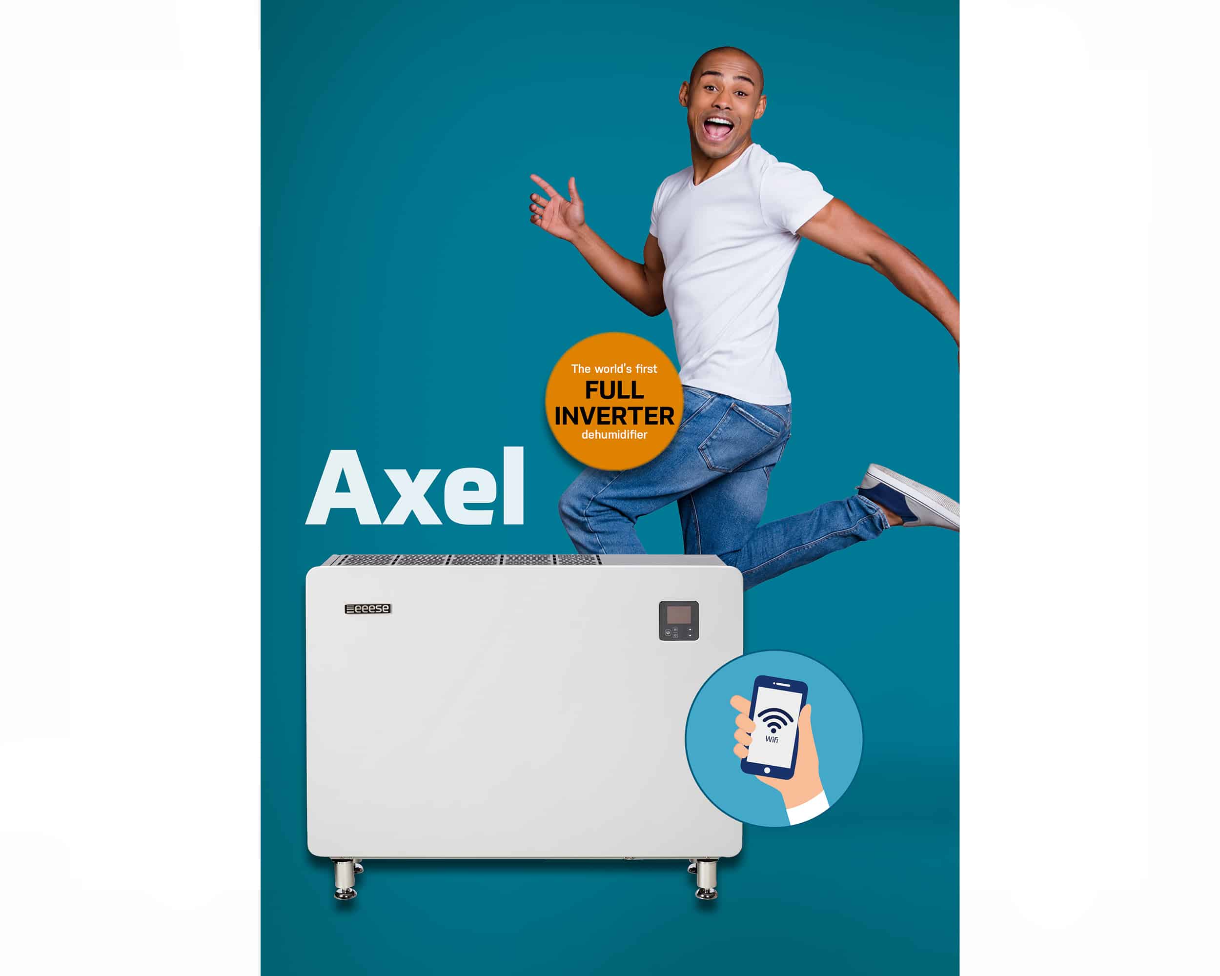 Axel Avfukter er blant serien med luftavfuktere fra Eeese der den nyeste teknologien er kombinert med nytenkende og innovative ideer for å forebygge mot global oppvarming.