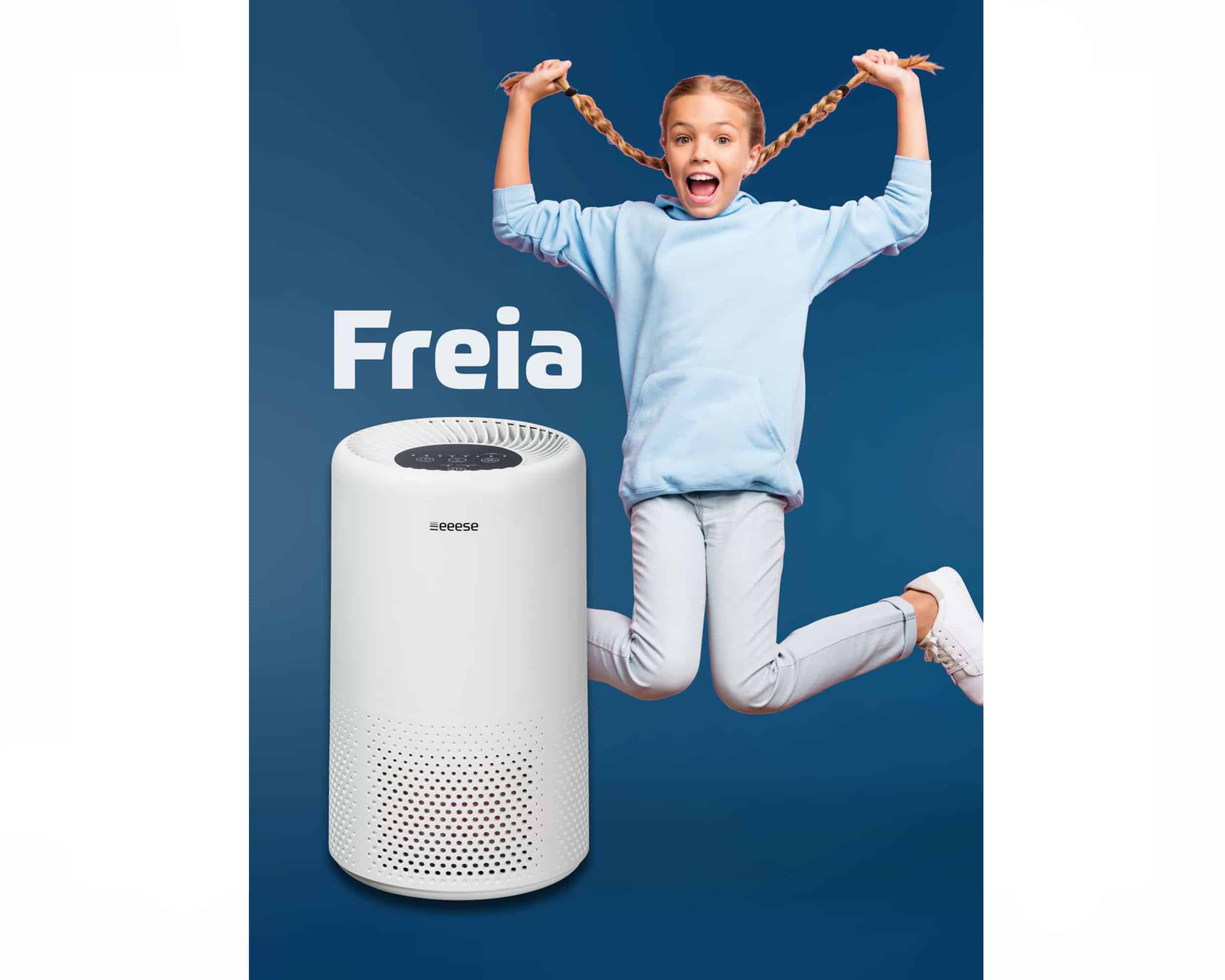 Freia Luftrenser arbeider med aktiv luftrensing i rom på opptil 15 m2 med UVC-lys og HEPA-filter!