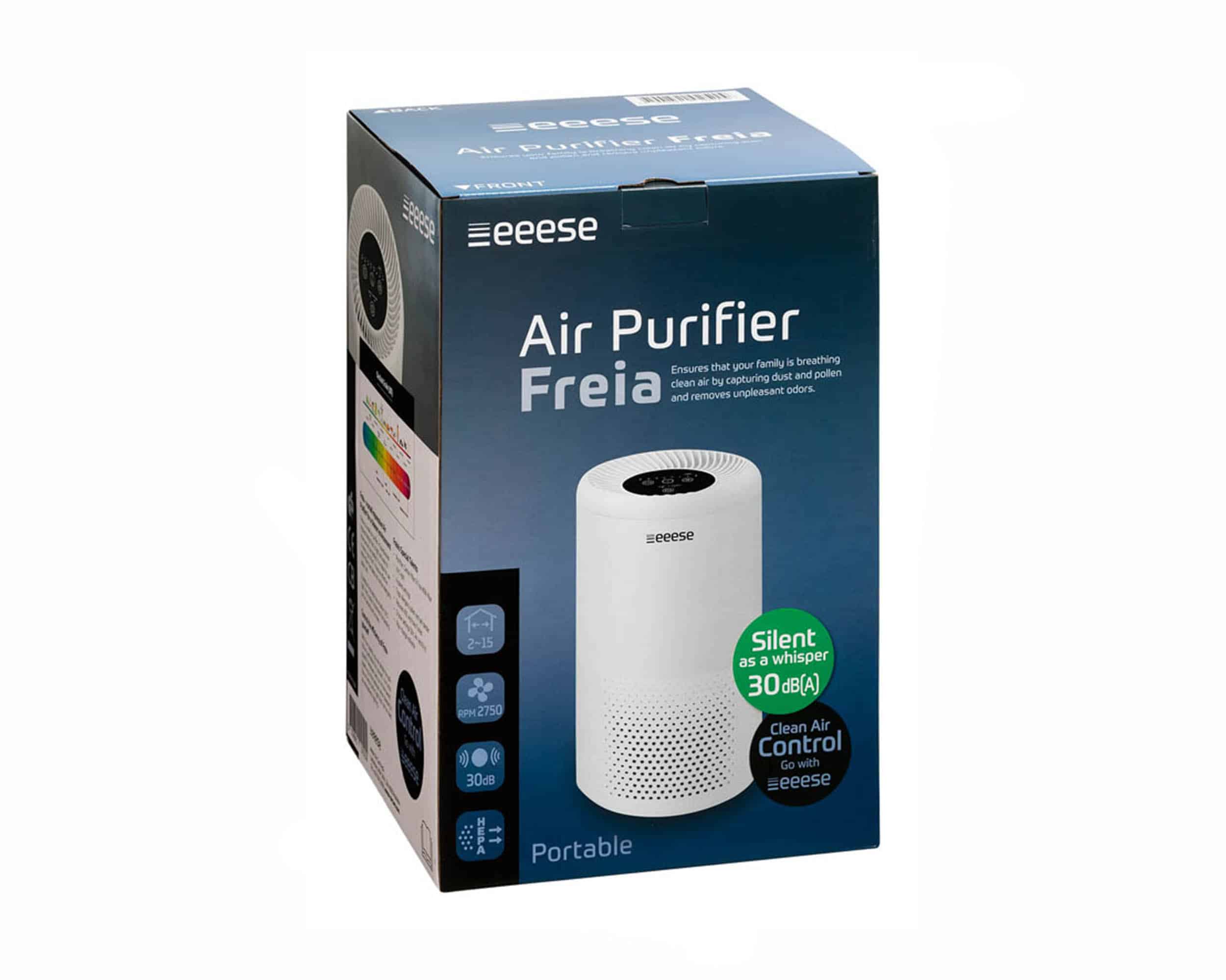 Freia Luftrenser er en liten og kompakt luftrenser som passer perfekt inn på barnerommet, kjøkkenet, soverommet eller gjestesoverommet. Luftrenseren kan innstilles på 4 forskjellige hastigheter og den er utstyrt med en egen timer med 3 innstillinger. Freia plukker opp blant annet pollen, partikler og hår fra kjæledyr og støv, og luftrenseren sier selv ifra når filteret må skiftes. Med et lydnivå på kun 30 dB på første hastighetsinnstilling, kan du fint bruke Freia uten å få problemer med lyden. Sørg for et sunt inneklima, og skaff deg Freia Luftrenser eller se utvalget av våre andre luftrensere her.
